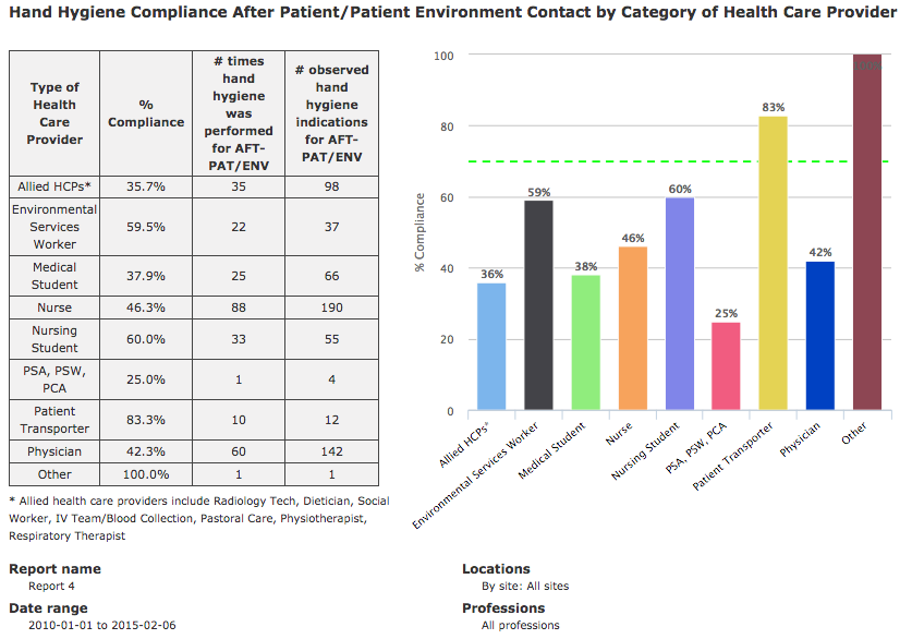 Automate your reporting with SpeedyAudit's range of powerful and versatile reporting tools. Reports are available for 4, 5 moments, and In/Out auditing. Filter by date, facility site, unit, profession and/or auditor.